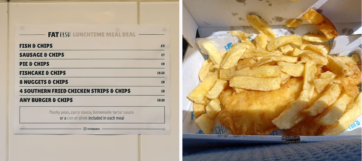 Love these guys in Wooburn Green! I would personally say the best fish and chips takeaway for any surrounding areas. A tasty Fish and Chips in a takeaway box with side options such as mushy peas to your liking. Very professional “bossman” and all the staff are friendly, well informed and keep up even with dinner rushes.